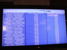 バスターミナルの電光掲示板で表示されていた、ルートと価格の表。